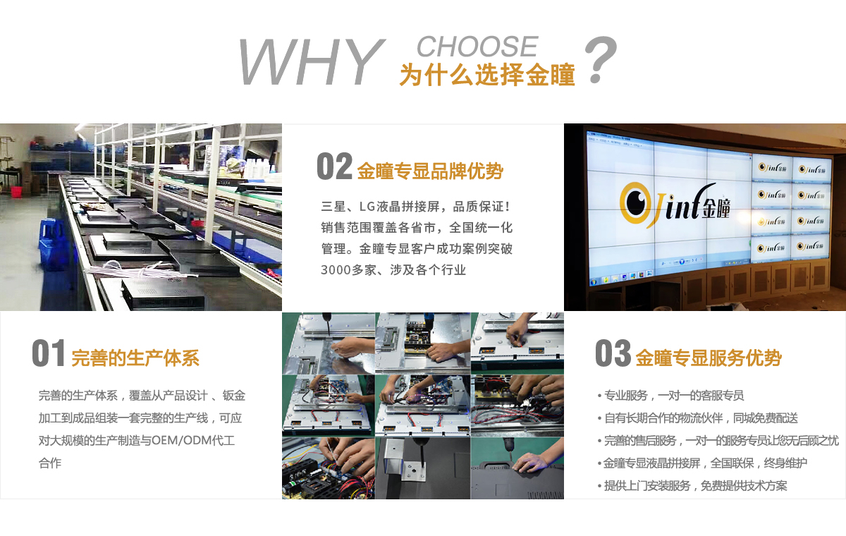 深圳市金瞳專顯科技有限公司成立于2010年,總部坐落于深圳。公司是一家專業(yè)從事液晶拼接屏、監(jiān)視器、廣告機(jī)、觸控一體機(jī)、排隊(duì)叫號(hào)機(jī)等人機(jī)互動(dòng)顯示技術(shù)的研發(fā)、生產(chǎn)、銷售、服務(wù)為一體的企業(yè),主營(yíng)拼接大屏、無(wú)縫拼接屏、LED/4K/46寸/55寸/高清液晶拼接屏、超窄邊液晶拼接屏等設(shè)備。